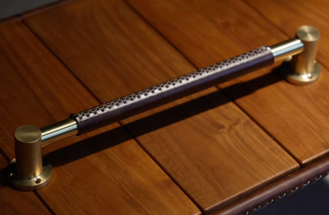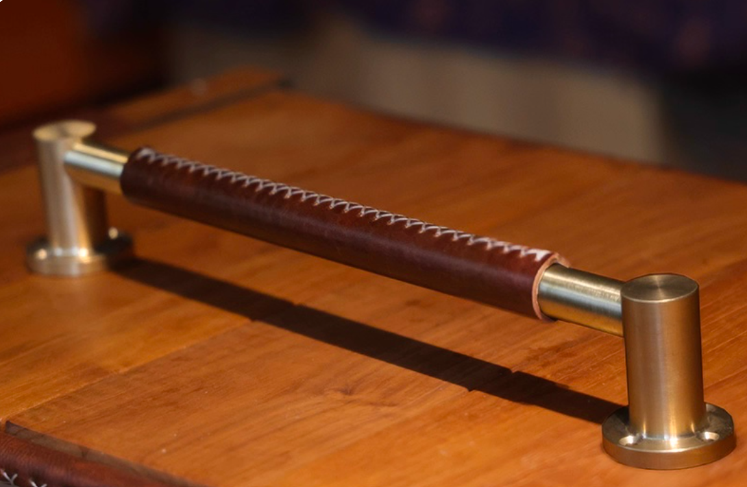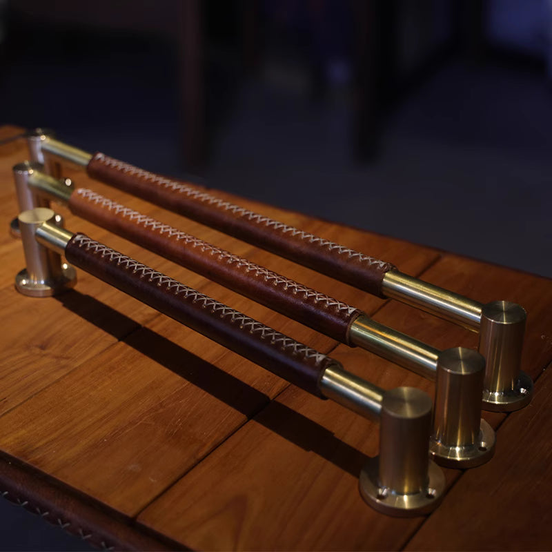 The Regent Door Pull Handle is a bold statement of craftsmanship, combining solid brass with hand-dyed leather for a refined balance of strength and elegance. Designed to elevate large cabinet doors, wardrobes, and full-height feature doors, it is available in four sizes — 1015mm, 515mm, 465mm, and 380mm — offering versatile options to suit both modern and classic interiors.