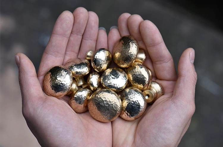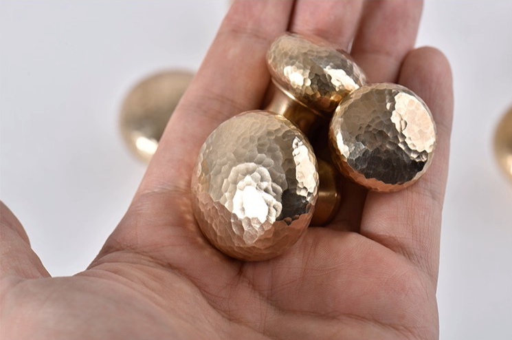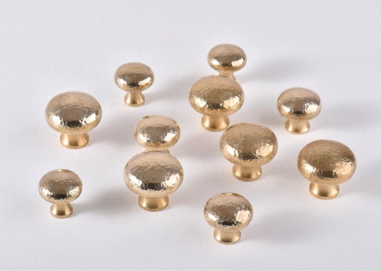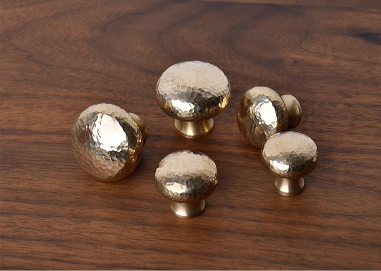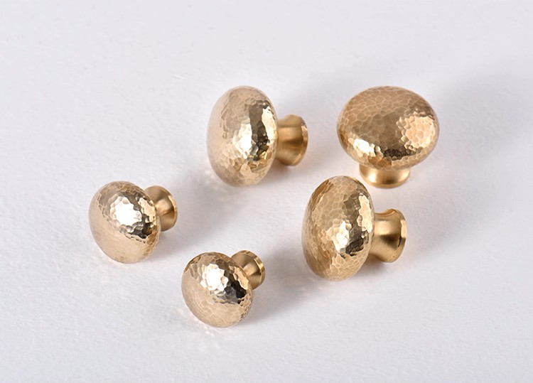A hand-crafted solid brass handle featuring a distinctive hammered texture, designed to bring timeless character to cabinets, drawers, and glass doors. With its single-hole installation and vintage-inspired form, The Aureus blends Nordic minimalism with American retro elegance, making it a versatile statement piece. Each handle is forged from pure brass, ensuring lasting durability and a warm golden patina that deepens with time.